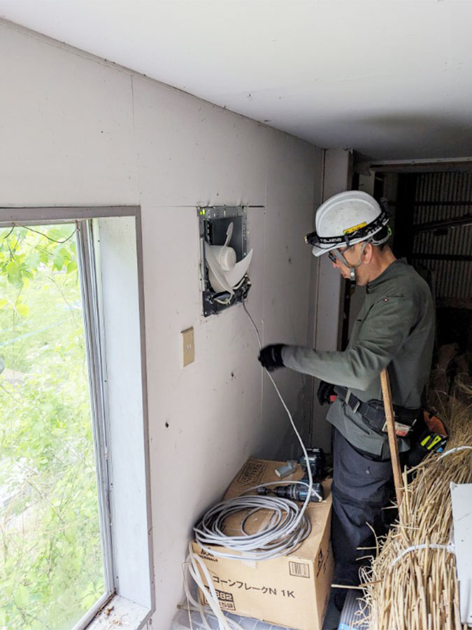 作業員の配線作業